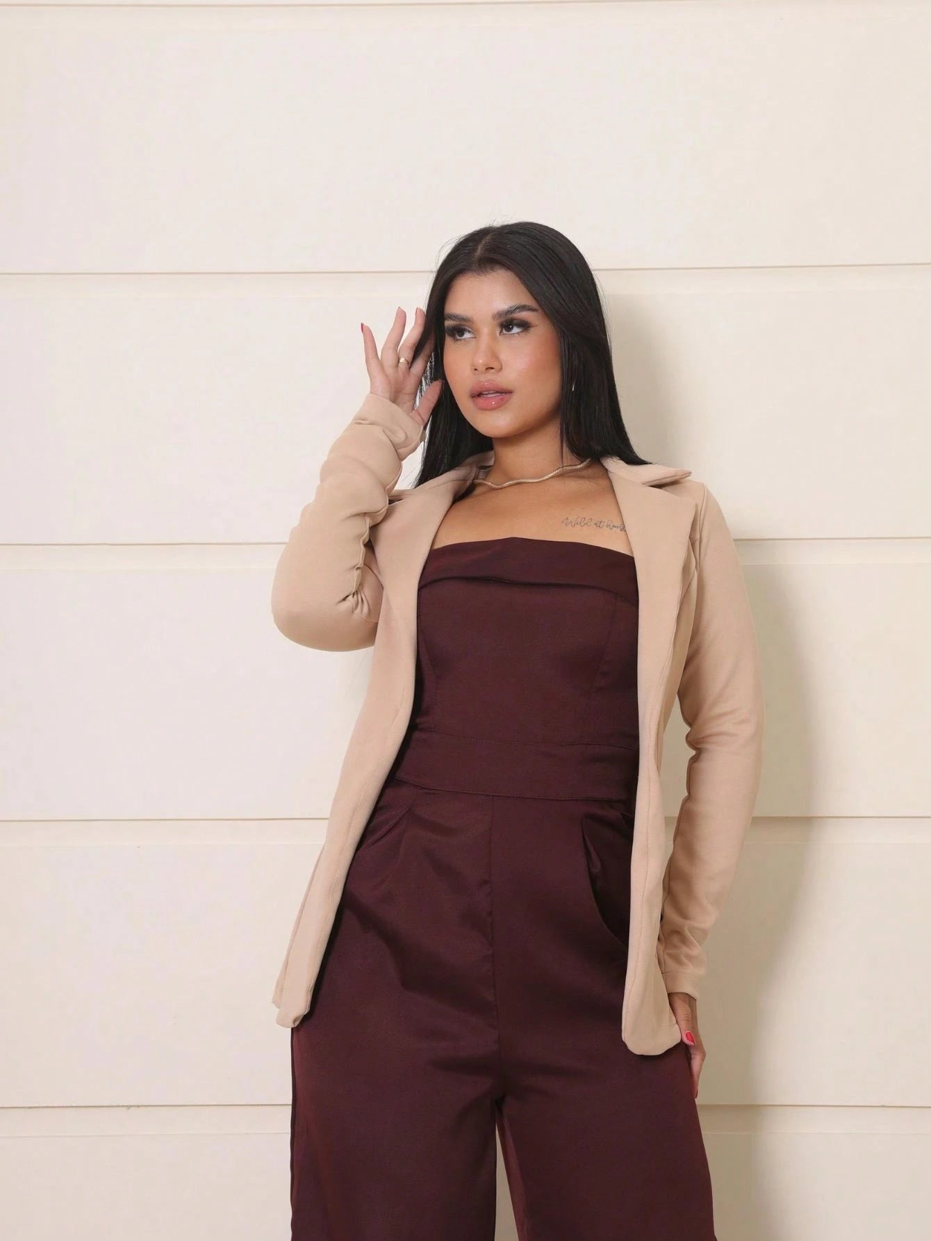 Descubra a sofisticação do Macacão Dayana, uma peça em alfaiataria que une estilo, elegância e personalidade. Com seu design tomara que caia, realça delicadamente os ombros, trazendo um toque de sensualidade sutil, ideal para eventos noturnos, festas e ocasiões especiais.